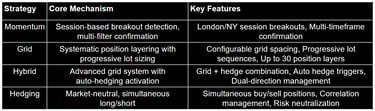 It combines an advanced grid system with automatic hedging triggered at set thresholds.
