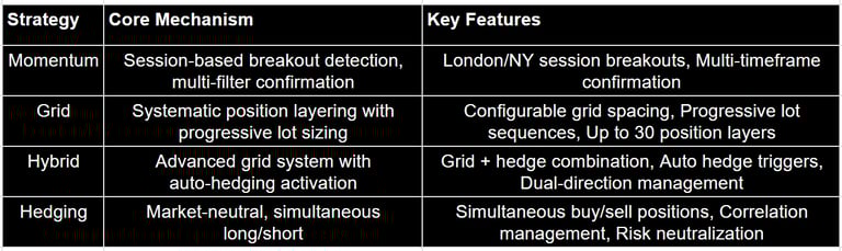 Systematic layering/grid: Places buy/sell orders at fixed intervals to profit from market ranging.