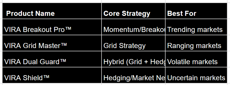 Find the perfect Vira trading Algorithm to match your market style and goals.